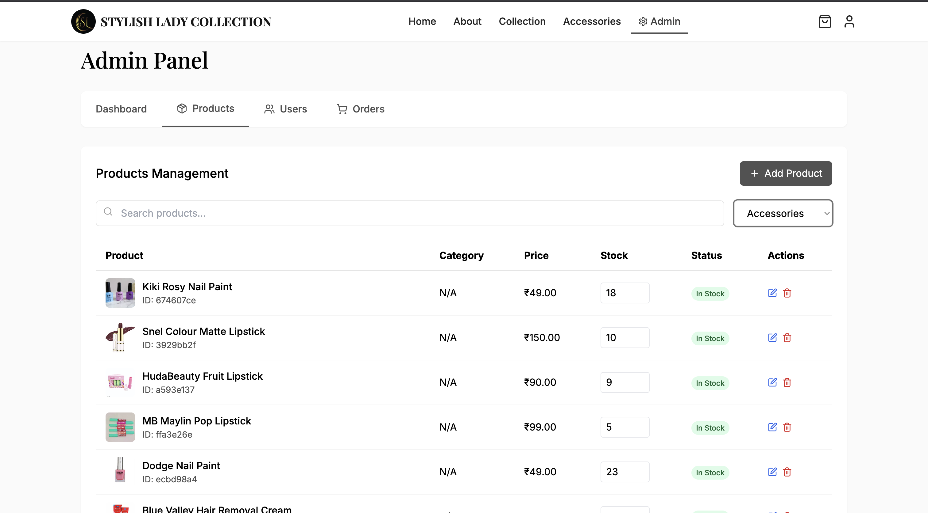 - Real-time product updates via Supabase
